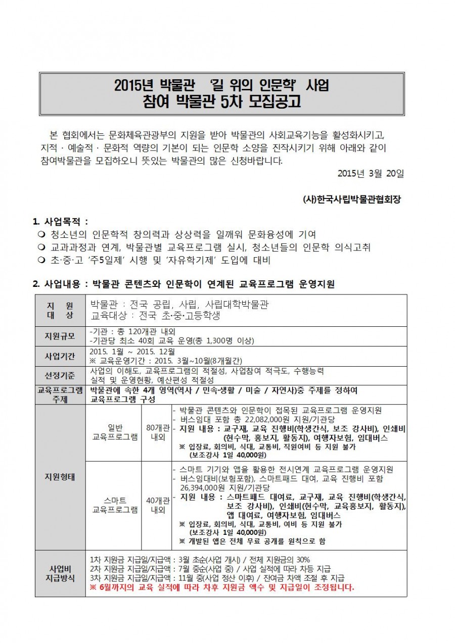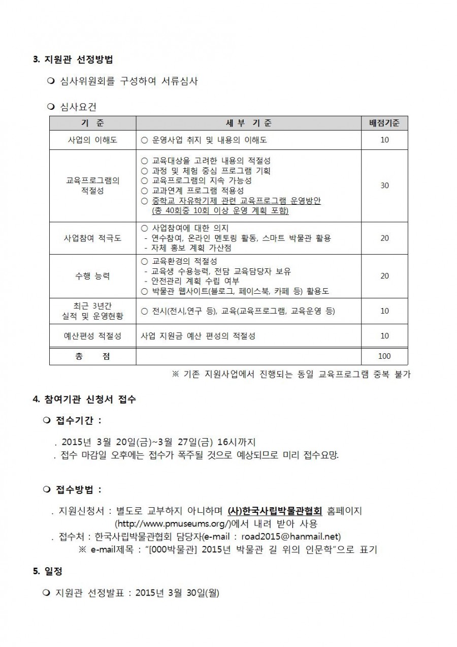 2015 박물관 '길 위의 인문학' 5차 추가 모집 안내