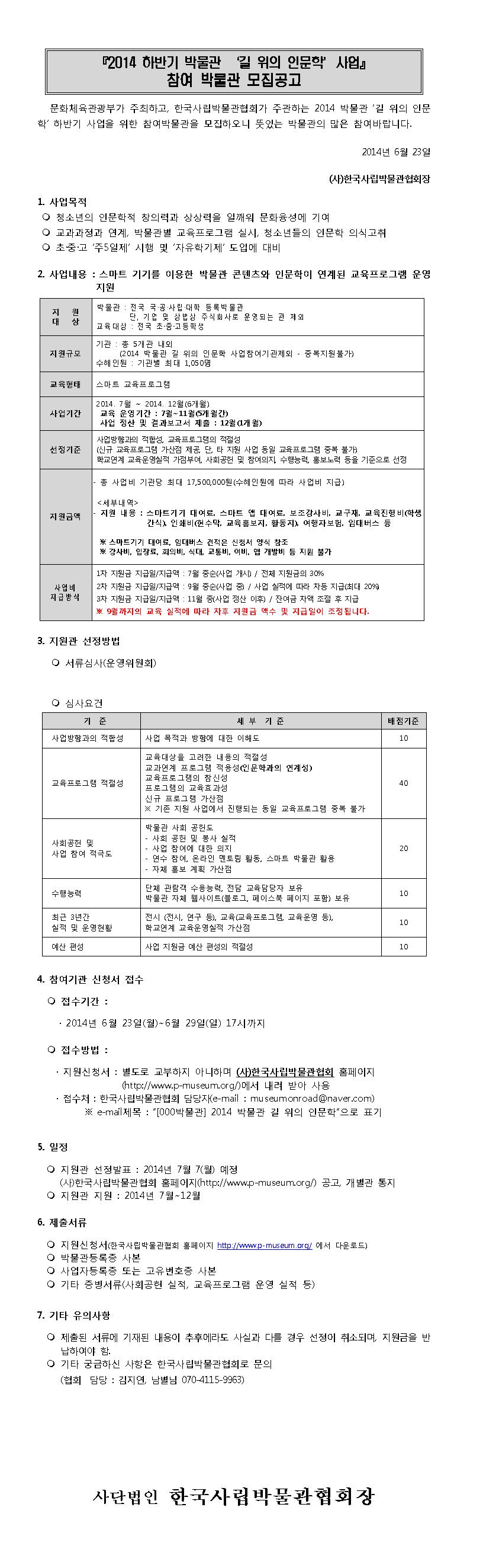 [인문학] 『2014 박물관 ‘길 위의 인문학’사업』참여 박물관 추가 모집공고 페이지 정보 작성자 관리자 작성일14-06-23 14:27 조회41,077회 댓글0건 관련링크 이전글 다음글 목록 본문 댓글목록 등록된 댓글이 없습니다. 이전글 다음글 목록
