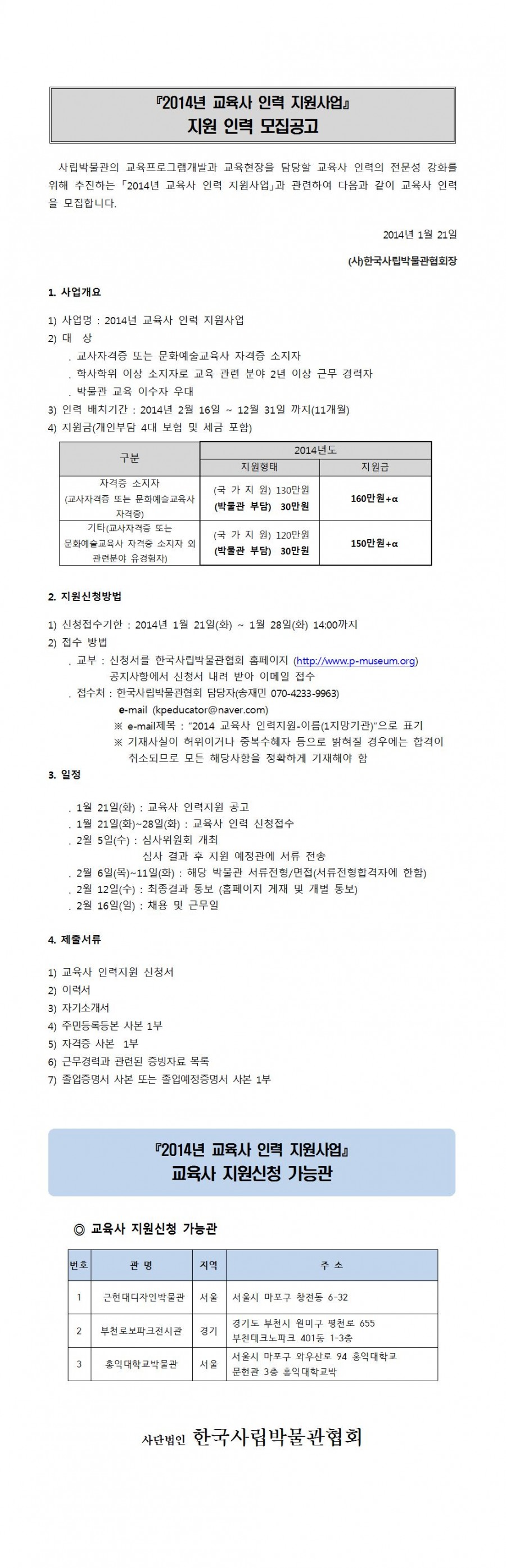 2014 교육사 인력 지원사업 - 지원 인력 모집공고