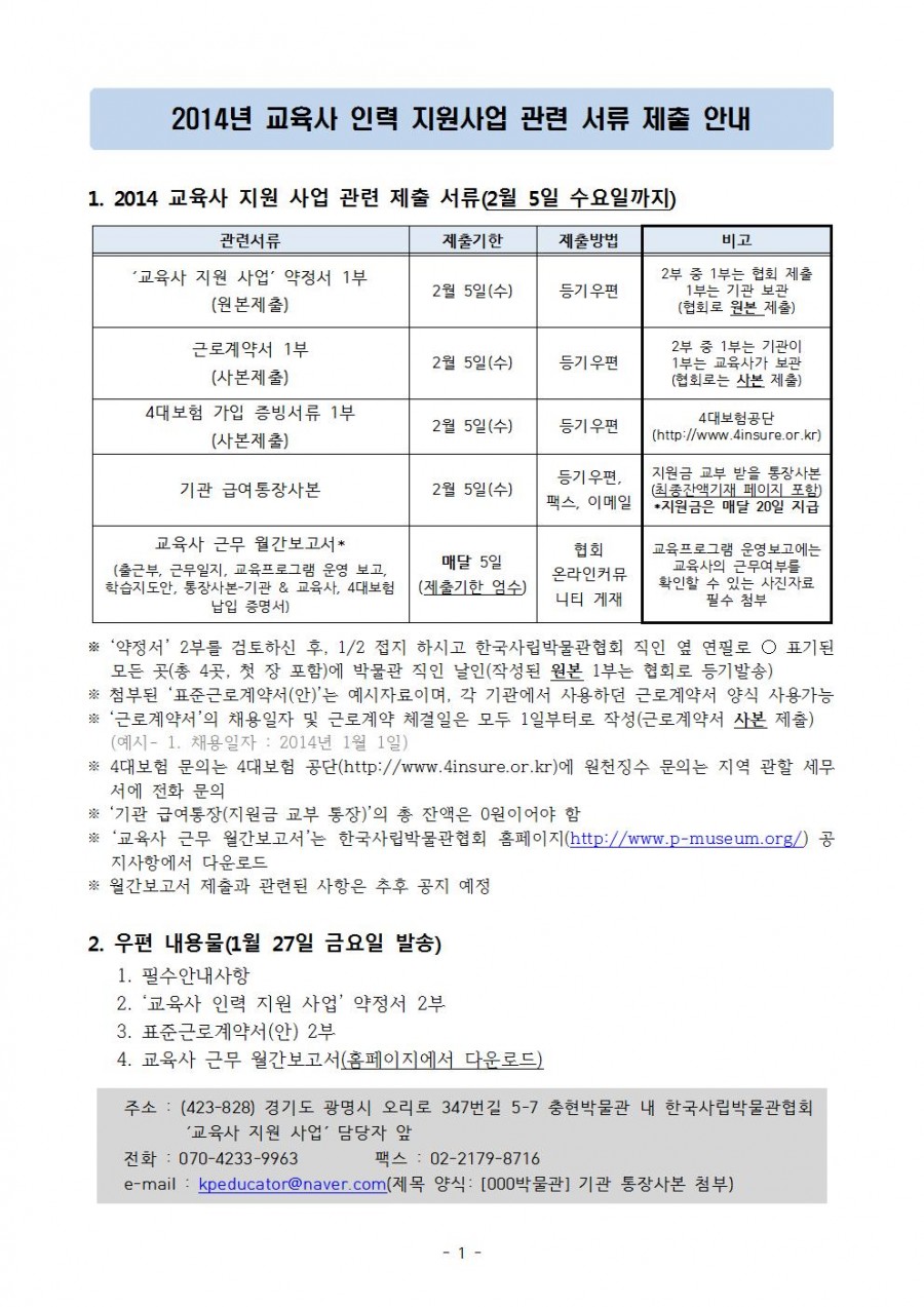 [2014 교육사 사업] 2014년 교육사 사업 관련 서류 제출 안내